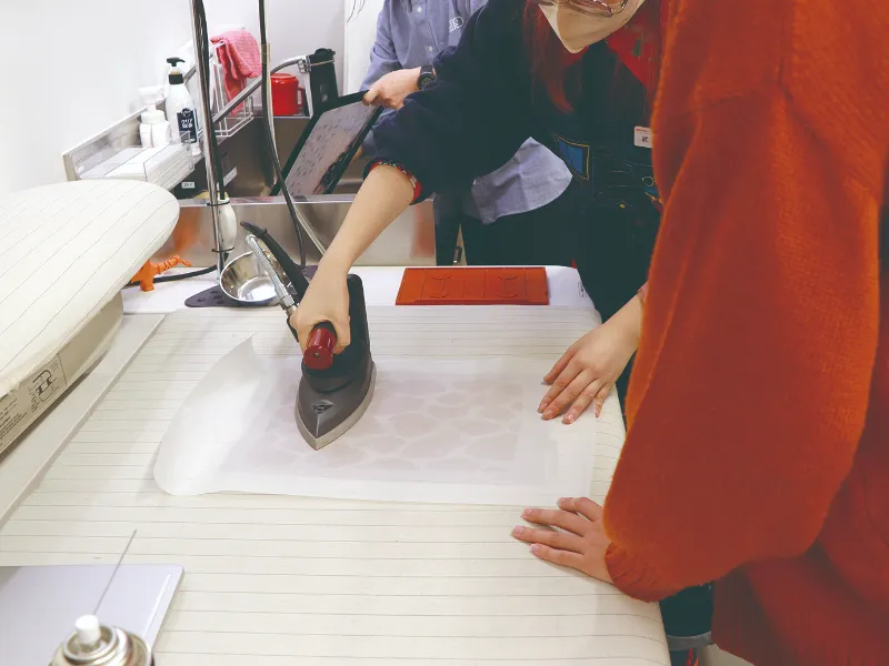 3. Place parchment paper over the printed fabric and apply heat with an iron to cure the ink.
