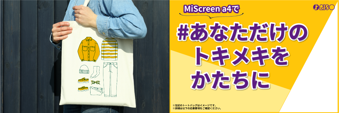 理想科学の小型デジタルスクリーン製版機『MiScreen a4』を使って制作したオリジナルトートバッグをプレゼント!