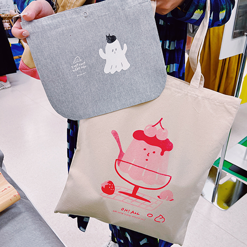 事前にデザインデータを預かっていた出展デザイナーのデザインはもちろん、当日持ち込まれたオリジナルデザインもその場ですぐに製版、印刷できると会場内でも話題になりました。